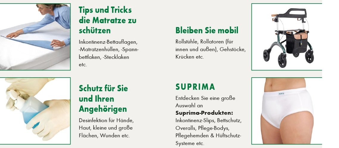 Spezialprodukte für die Krankenpflege erleichtern zusätzlich Ihre Arbeit zu Hause!